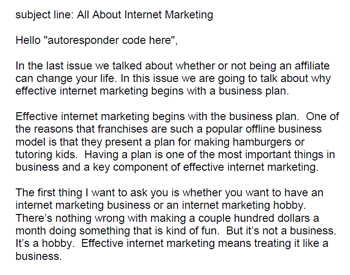 The "All About Internet Marketing" newsletter package is a nice collection of private label articles all preformatted in a ready to go newsletter style format. All you have to do is plug in your promo ads and any other content or publisher notes that you want and send it to your subscribers.