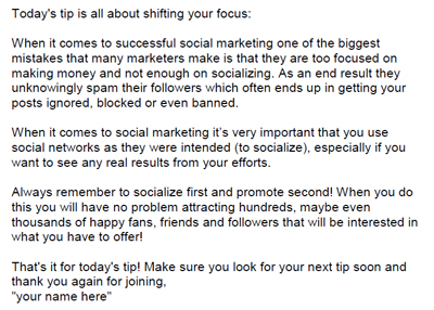 "Social Marketing Tips" Package?