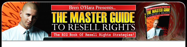 Sincerely, Bren O'Hara & Your Name P.S. Remember when I told you that anyone can learn how to start a business reselling information such as e-books to others who want to market the books themselves? That was not just a boast. The methods and strategies described in this book have been collected through time and will not only work now, but in the future as well. Get "The Master Guide To Resell Rights" while it is still available and get started in this virtually untouched internet market.