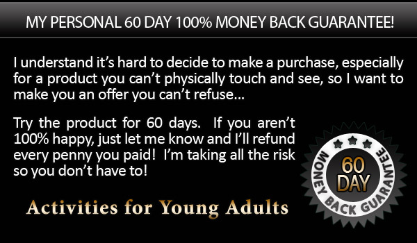 P.S. You’ll be amazed at how simple and easy it is to learn about exciting and fun activities for young adults with Activities for Young Adults. You will feel more confident and secure when you master the incredible techniques presented in this special report.