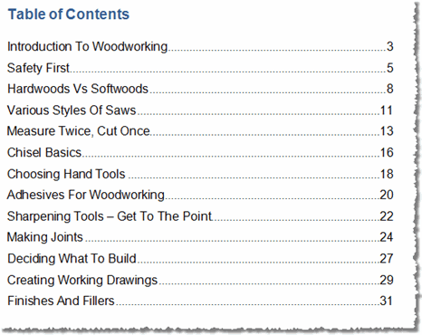 Books are expensive and much of the content is full of fluff and not the real nitty-gritty stuff that you need to know to begin working with wood. The information contained within this text may not help you build everything you want to, but it can have you on the way to being more in tuned with what you need to begin a career or hobby working with wood. It is so frustrating hearing advice from one webpage only to find it contradicted on another. Give up those endless hours of research and reading because there is a one stop, tell-all source that will give you the information that you need to begin the art of woodworking.